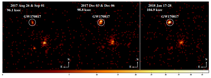研究團(tuán)隊(duì)分析了在探測(cè)到引力波和伽馬射線數(shù)天、數(shù)周和數(shù)個(gè)月后的 X 射線數(shù)據(jù)。如果中子星合并形成了更重的中子星,天文學(xué)家預(yù)計(jì)它將會(huì)快速旋轉(zhuǎn),產(chǎn)生強(qiáng)磁場(chǎng),導(dǎo)致明亮 X 射線噴射。但研究人員沒有觀察到來(lái)自中子星的 X 射線,他們認(rèn)為合并形成了一個(gè)黑洞。
