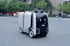 在隊(duì)伍中打頭陣的是今年9月剛剛誕生的小蠻驢機(jī)器人,它們由阿里巴巴達(dá)摩院研發(fā),集成了達(dá)摩院最前沿的人工智能和自動(dòng)駕駛技術(shù),具有類人認(rèn)知智能,大腦應(yīng)急反應(yīng)速度達(dá)到人類7倍。在人車混行的環(huán)境中,它們能夠輕松處理復(fù)雜路況、秒速選擇最優(yōu)路徑。