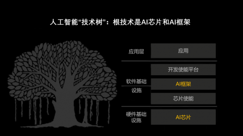 各個行業(yè)各個領(lǐng)域都有自己的根技術(shù)。就計算領(lǐng)域而言,其根技術(shù)包括提供算力的處理器和能夠把計算能力發(fā)揮出來的基礎(chǔ)軟件。其中,通用計算領(lǐng)域的根技術(shù)則包括計算處理器、操作系統(tǒng)和數(shù)據(jù)庫。具體到人工智能領(lǐng)域,人工智能芯片、人工智能框架則共同構(gòu)成了人工智能的根技術(shù),兩者具備不可或缺和難以替代性,是人工智能完整產(chǎn)業(yè)鏈的核心戰(zhàn)略控制點(diǎn)、生態(tài)聚合點(diǎn)。