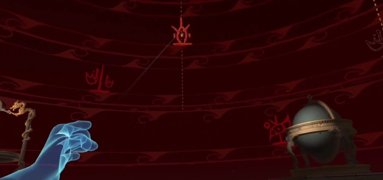 為了更好地還原古籍背后的故事, PICO 在《古籍尋游記》中運(yùn)用了6DoF交互技術(shù)。DoF即自由度(Degree of Free),可理解為用戶在VR空間中能做何種程度的自由運(yùn)動(dòng)。傳統(tǒng)的3DoF技術(shù)僅支持VR空間中的用戶在原地體驗(yàn),不可以有位移,只能通過頭部轉(zhuǎn)動(dòng)來轉(zhuǎn)換視角;而6DoF除了3DoF頭部的三個(gè)軸向的轉(zhuǎn)動(dòng)外,還包含了身體在3個(gè)方向的位移;因此在6DoF互動(dòng)體驗(yàn)中,用戶不僅可以四處觀看,還可以靠近某個(gè)物體。得益于6DoF技術(shù)的加持,用戶可以在《古籍尋游記》中觸碰、拿起、旋轉(zhuǎn)、放大文物,實(shí)現(xiàn)與文物“零距離”接觸這一前所未有的參觀體驗(yàn)。