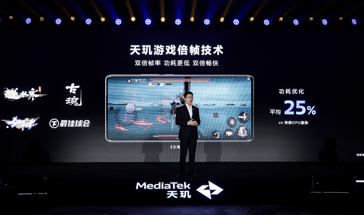 同時(shí),天璣9300還可支持聯(lián)發(fā)科全新的游戲倍幀技術(shù),不僅能夠進(jìn)一步提升游戲顯示的幀率,與傳統(tǒng)GPU渲染相比,功耗還能降低25%,讓用戶能夠享受到更加流暢、持久的游戲體驗(yàn)。