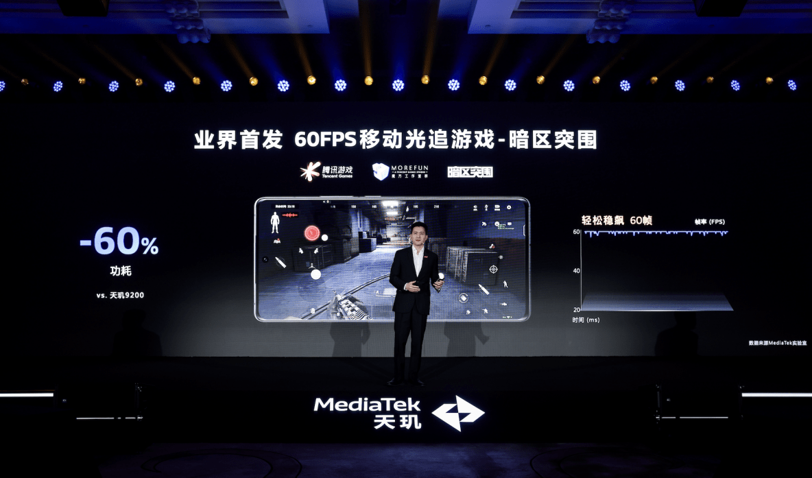 得益于領(lǐng)跑級(jí)的光追性能,天璣9300在業(yè)界首發(fā)支持《暗區(qū)突圍》60FPS光線追蹤,不僅輕松穩(wěn)定60幀且十分穩(wěn)定,功耗也顯著降低60%,能為用戶帶來(lái)更加逼真的超流暢移動(dòng)光追體驗(yàn)。