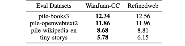 基于WanJuan-CC訓練的1B模型在Pile驗證集評測效果更優(yōu),這表明由WanJuan-CC訓練的模型在不同領域和各類知識上擁有更強能力