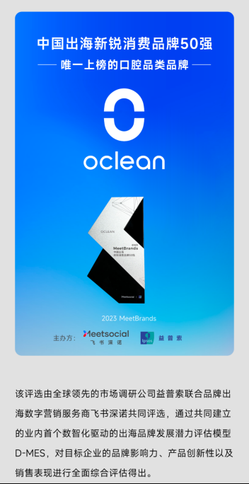 圖|Oclean榮獲2023中國(guó)出海新銳消費(fèi)品牌50強(qiáng)