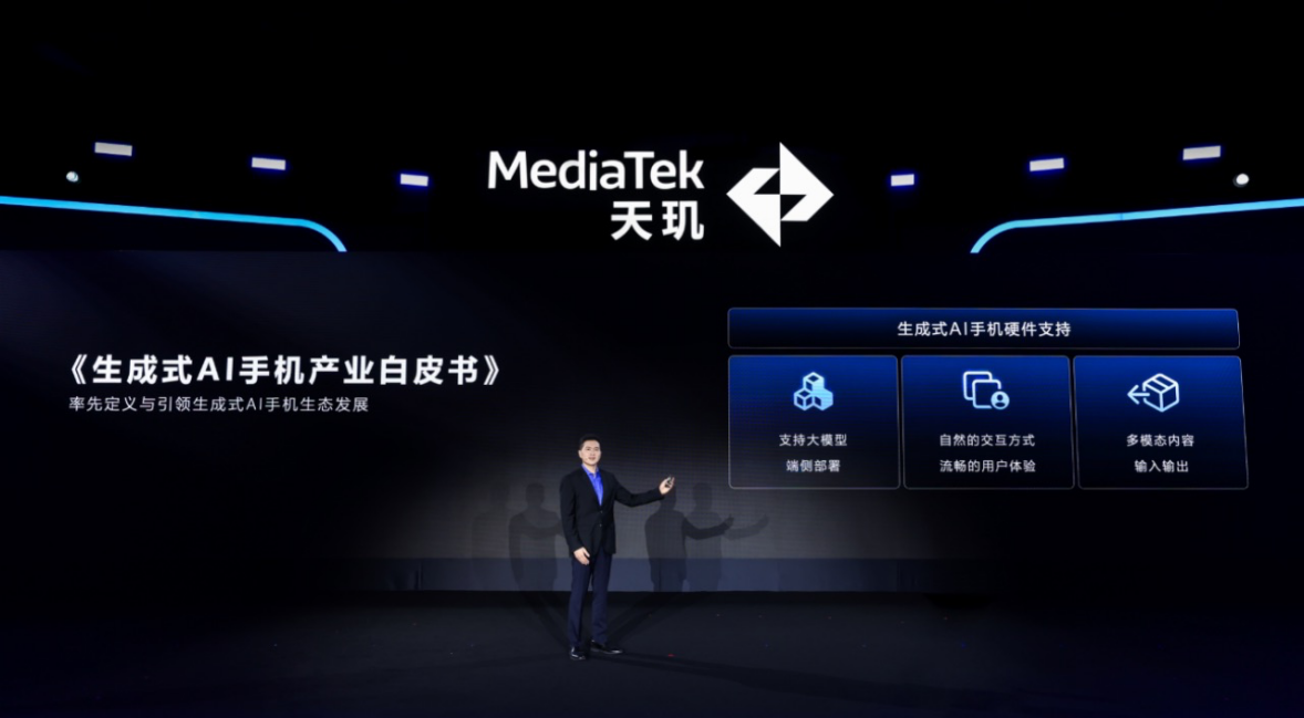 在天璣開發(fā)者大會上,聯(lián)發(fā)科聯(lián)合Counterpoint并攜手阿里云通義千問、百川大模型、虎牙、酷狗音樂、零一萬物、OPPO、Soul、騰訊AI Lab、騰訊混元、vivo行業(yè)頭部伙伴聯(lián)合發(fā)布《生成式AI手機產(chǎn)業(yè)白皮書》,共同定義了“生成式AI手機”的概念和典型特征?!栋灼诽岬剑荷墒紸I手機是利用大規(guī)模、預訓練的生成式AI模型,實現(xiàn)多模態(tài)內(nèi)容生成、情境感知,并具備不斷增強的類人能力。生成式AI手機開啟了智能手機發(fā)展的新周期,長遠看,智能手機將會發(fā)展為移動智能體。