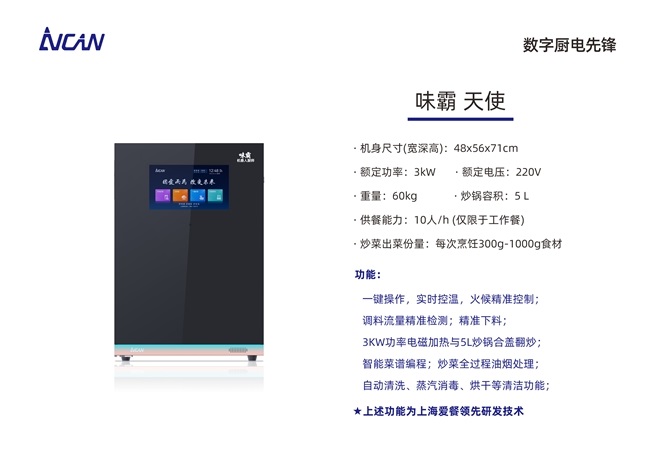 據(jù)了解,上海愛餐機(jī)器人(集團(tuán))有限公司由三位80年代初研究生同窗創(chuàng)立于2009年,是全球數(shù)字廚電的創(chuàng)造者??偛课挥谏虾?下設(shè)廣州產(chǎn)品研究院,是一家集品牌運(yùn)營、產(chǎn)品研發(fā)、委托制造、產(chǎn)品銷售渠道管理為一體的高新技術(shù)企業(yè)、專精特新企業(yè)、擁有五百多項(xiàng)國內(nèi)外專利。愛餐數(shù)字廚電產(chǎn)品分為三大系列十個(gè)產(chǎn)品(炒菜系列、蒸烤系列、油炸系列),是軟硬結(jié)合、機(jī)電一體,具有三大功能八大特征能隨心所欲完成烹飪?nèi)^程的機(jī)器人。在歷年的發(fā)展過程中,獲得了2023年上海市“專精特新”企業(yè)、上海市高新技術(shù)企業(yè)、上海市機(jī)器人協(xié)會(huì)理事單位、廣東省機(jī)器人協(xié)會(huì)副會(huì)長單位。擁有國內(nèi)外專利五百多項(xiàng)。