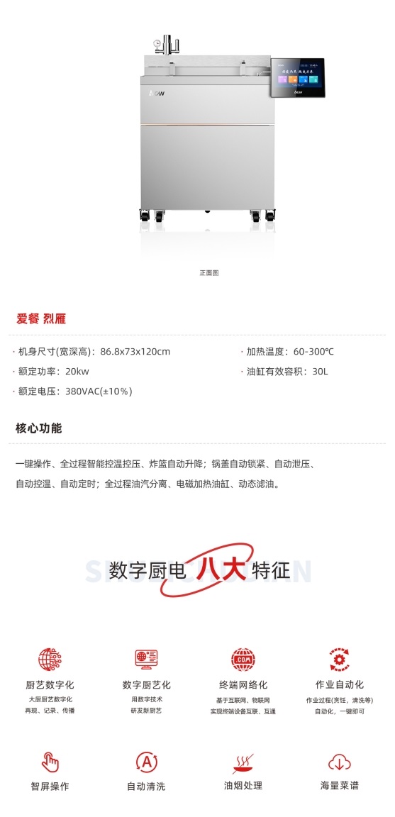 據(jù)了解,上海愛餐機(jī)器人(集團(tuán))有限公司成立于2009年,總部位于上海,下設(shè)廣州研究院,是一家集品牌運(yùn)營(yíng)、產(chǎn)品研發(fā)、委托制造、產(chǎn)品銷售渠道管理為一體的高新技術(shù)企業(yè)。愛餐數(shù)字廚電產(chǎn)品分為三大系列十個(gè)產(chǎn)品,煸炒焗鹵燴、蒸烤燉煮炸等工藝全覆蓋,具有溫度精控、調(diào)料精控、動(dòng)作流程精控三大功能,廚藝數(shù)字化、數(shù)字廚藝化、終端網(wǎng)絡(luò)化、作業(yè)自動(dòng)化、智屏操作、自動(dòng)清洗、油煙處理、無限菜譜等八大特征,能隨心所欲完成烹飪?nèi)^程的機(jī)器人。